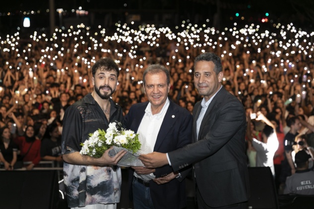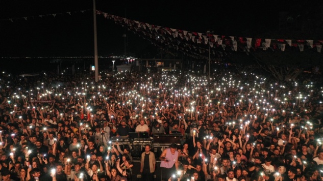 Büyükşehir Belediyesi Kültür ve Sosyal İşler Dairesi tarafından Özgecan Aslan Barış Meydanı’nda düzenlenen konseri çok sayıda vatandaş ile birlikte Mersin Büyükşehir Belediye Başkanı Vahap Seçer ve CHP Parti Meclisi Üyesi ve Mersin Milletvekili Ali Mahir Başarır da dinledi.