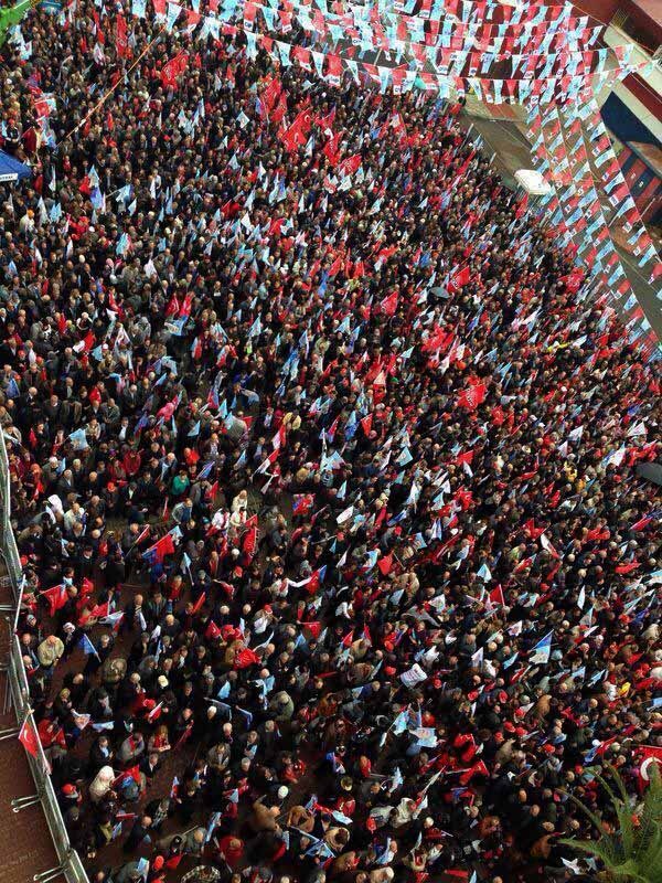 Tevfik Sırrı Gür Stadı yanında yapılan mitinge, havanın yağışlı olmasına rağmen 50 bine yakın Mersinli katıldı.