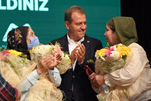 Konuşmaların ardından Başkan Seçer ve protokol üyeleri, üretici kadınlara çiçek verdi.