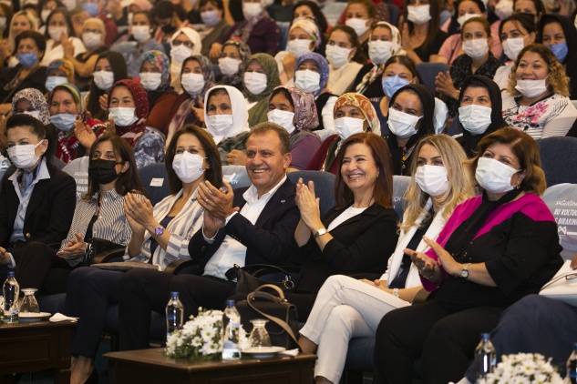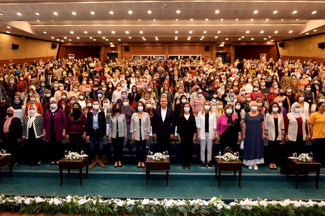 Mersin Büyükşehir Belediye Başkanı Vahap Seçer, Büyükşehir Belediyesi Tarımsal ve Veteriner Hizmetleri Dairesi tarafından düzenlenen Dünya Çiftçi Kadınlar Günü dolayısıyla Mersin’in dört bir yanından gelen üretici kadınlarla buluştu. Tarımda hayata geçirdikleri hizmetleri anlatan, kadınlara verdikleri desteklerin önemine dikkat çeken Başkan Seçer, her zaman kadın ve çocuklardan taraf olduğunu vurguladı. Seçer,  “Kadını doğduğu yerde doyuracağız. Başka çaremiz yok. Kadınlarımız dimdik ayakta olacak” diye konuştu. Mersinden Kadın Kooperatifi Yönetim Kurulu Başkanı Meral Seçer ise “Birlikte üretelim, birlikte çoğalalım, ben değil kocaman bir biz olalım” çağrısında bulundu.