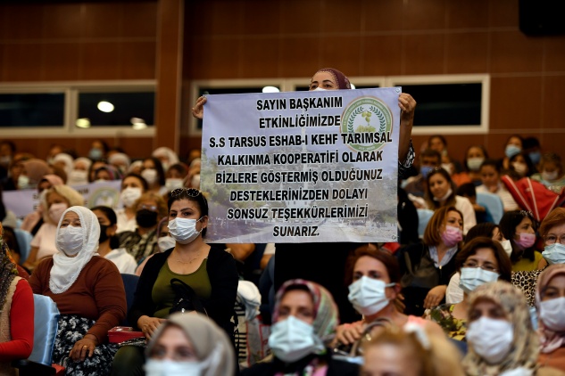 Başkan Seçer, kadınların üretime katılmasının öneminden söz ederek, “Üretim olmazsa, kırsal olmazsa, çiftçilik olmazsa biz tencereyi nasıl kaynatacağız? İstanbul’da, Ankara’da, İzmir’de, büyük metropollerde, burada yetişen ürünlerimiz, güzel Anamur’un muzu olmazsa, Silifke’nin çileği olmazsa, Tarsus’un üzümü olmazsa, domatesi, salatalığı, biberi, ıspanağı, pırasası olmazsa nasıl yemek yapacak bu kadınlarımız? İşte bunları da kadınlarımız üretiyor. Burası tarım bölgesi. Hangi köşeye bakarsınız bakın üretim görüyorsunuz, bereket görüyorsunuz. O üretimi sağlayan da bereketi sağlayan da zaten siz kadınlarımızsınız. Ben çalışandan, üretenden tarafım. Bizim üretmemiz lazım” diye konuştu.