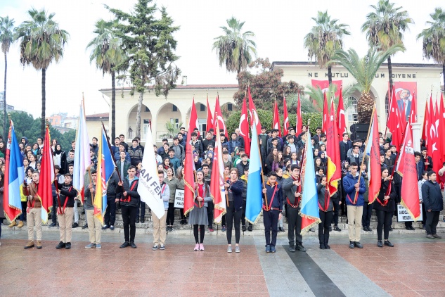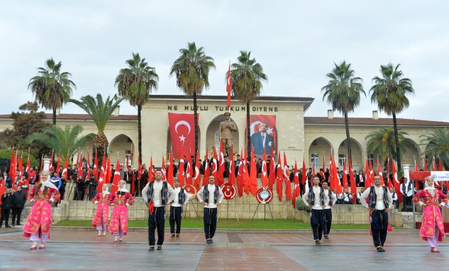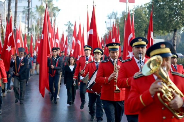 Atatürk Anıtına çelenklerin sunulması ile devam eden tören İstiklal Marşının okunması ve saygı duruşunda bulunulmasının ardından Vali Su, Başkan Kocamaz ve Tuğamiral Gürbüz üstü açık cipe binerek tören alanındaki Mersinlileri selamladı. Katılımın yoğun olduğu ve öğrenciler tarafından günün anlam ve önemini belirten şiirlerin okunduğu törende Başkan Kocamaz da bir konuşma yaptı.