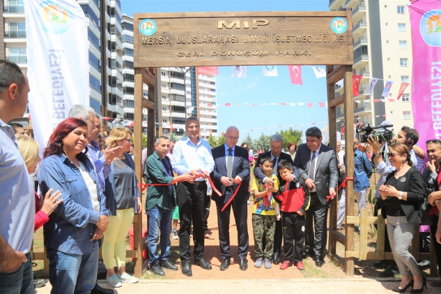 Mezitli Belediyesi tarafından tamamı atık malzemelerden oluşan ‘Geri Dönüşüm Parkı’nın açılışı yapıldı. Mezitli Belediye Başkanı Neşet Tarhan’ın yanı sıra CHP Mersin Milletvekilleri Cengiz Gökçel ve Alpay Antmen, Mersin Uluslararası Liman İşletmeciliği A.Ş. (MIP) Genel Müdürü Johan Van Daele, belediye meclis üyeleri, mahalle muhtarları ve çok sayıda vatandaşın katıldığı açılışta çocuklar coşkuyla oyun gruplarına akın etti. Vatandaşlar zeytin ağacının köklerinden yapılan epoksi masa ve koltuklara büyük ilgi gösterdi.