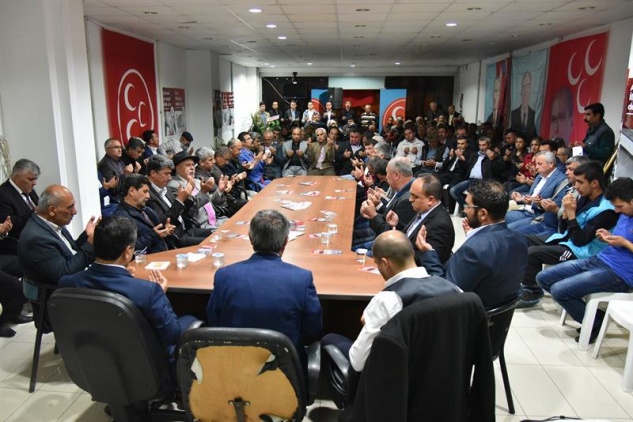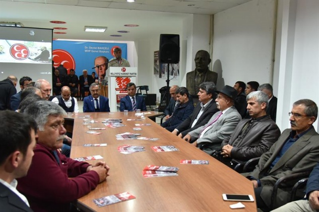 “Kısa bir süredir partimiz açık. Burada sizlere partimizin var olduğunu, kapımızın açık olduğunu, ‘gönüldaşlarımızın yuvası burasıdır, gelmelisiniz, kucaklaşmalıyız, dertleşmeliyiz, dünyanın fitne fesadını bir kenara bırakıp kucaklaşmalıyız’ diye defalarca söyledim. Bana sadece ‘gel abilik yap’ dediler. Ben de abiniz olarak söylüyorum; ayrılığı, gayrılığı bir kenara bırakın. Kucaklaşmanın, birbirimizi sevmenin, tekrar iktidar olmanın yollarını bulmak zorundayız. Eğer sizler gelmezseniz yerimizde yeller eser. Bakın, giden gider. Ben, beni var eden, beni düşündüren, beni ayakta tutan gücün, bu güç olduğuna inanıyorum. Bütün ülküdaşlarımdan aynı duygulara sahip olmasını istirham ettim. Evet, MHP varsa biz varız. Değilse gerisi lafü güzaf. Ben kafa tutup gidenleri çok gördüm. Üzüntüyle birbirimize bakarak sokakta selamlaşmadan geçtiklerimizi gördüm. Bunları yaşamak zorunda değiliz. Allah’ın izniyle Türk milliyetçiliğinin gücüyle ve kudretiyle, islamın iman aşkıyla kendi kendimize ‘yürü bakalım, yolumuza devam edelim, hedefi yakalayalım’ demenin azmini ve kudretini kendimizde bulmalıyız. Bizim buna ihtiyacımız var. Türkiye’nin bize ihtiyacı var. Ben o kudretli sesin devam ettiğini, onun mirasının devam ettiğini ve onun mirasının bu yuvalar olduğunu, MHP teşkilatlarının olduğunu iddia ediyorum ve söylüyorum. Bunun dışındaki başka arayışlar bizi hezimete, yanlışa götürür. Kim olursa olsun. Bir, iki kere yanlış yapma hakkı vardır. Ama artık üçüncüde vicdanen kendini kontrol etmeli, ‘acaba ben doğru mu yapıyorum, acaba ben nefsime yenildim mi’ diye düşünüp kendi kararını vermeli. Bu akşamdan itibaren lütfen başınızı yastığa koyduğunuzda bir kere daha muhasebe yapın.”