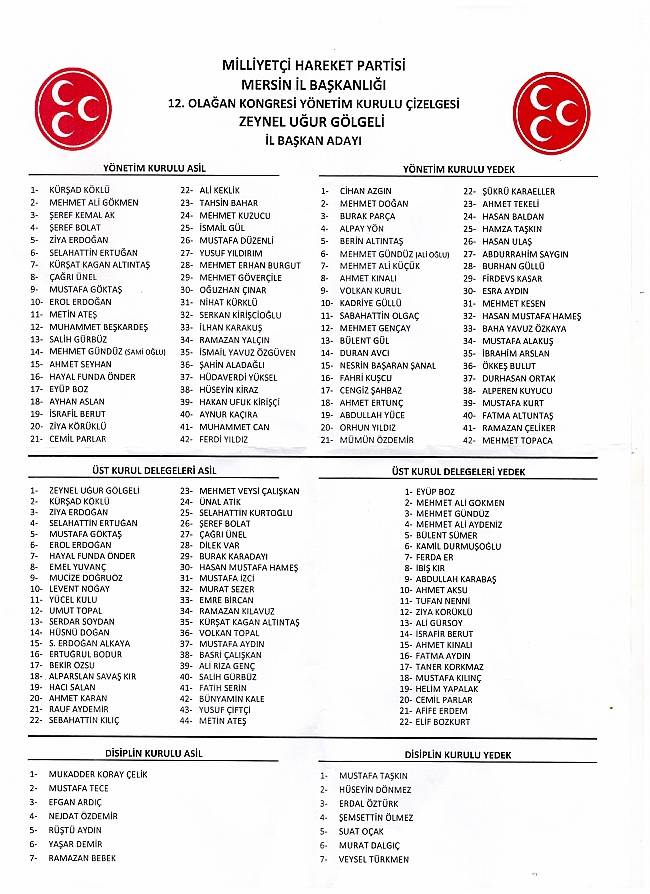 Milliyetçi Hareket Partisi Mersin İl Başkanlığı 12’nci Olağan Kongresi, eski-yeni binlerce partiliyi bir araya getirdi. MHP Genel Başkan’ı Devlet Bahçeli’ye bağlılığını bildiren il teşkilatındaki birliktelik, MHP’nin kan kaybı yaşadığını söyleyenlere net bir mesaj niteliği taşırken, tek liste ile seçime girdiği seçimde 11’i geçersiz sayılan 521 oydan 510’unu alan mevcut İl Başkan’ı Zeynel Uğur Gölgeli ise yaptığı konuşmada çarpıcı mesajlara imza attı.