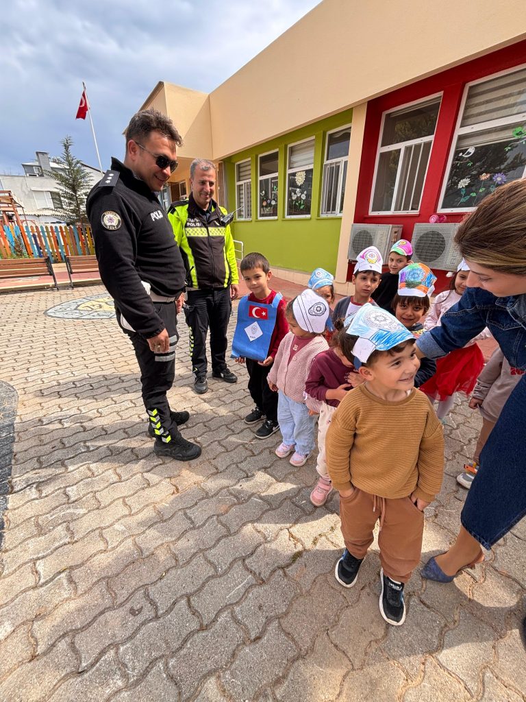 Polis ekipleri ayrıca çocuklara acil durumlarda nasıl hareket edilmesi gerektiğini, 112 Acil Çağrı Hattı’nın doğru kullanımını ve güvenlik güçleriyle sağlıklı iletişim kurmanın önemini örneklerle anlattı.