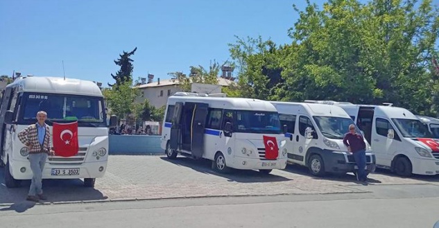 Bozyazı’da minibüsçüler araçlarına Türk bayrağı asarak teröre tepki gösterdiler.