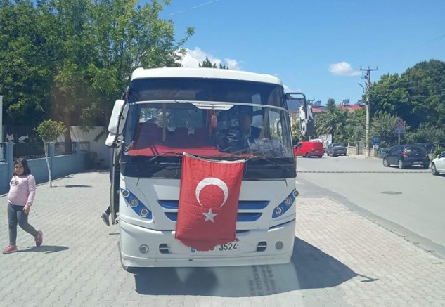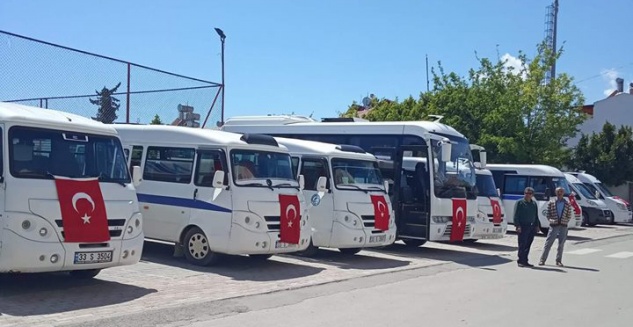 Bozyazı Öğrenci Taşıma Kooperatifi üyeleri Hakkari’de şehit olan ve yaralanan kahraman askerimize destek olmak, teröre karşı tepki göstermek için mesailerine Türk bayrağı asılı minibüsleriyle başladılar.