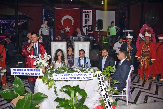 Sevgi – Duran Çaltı çiftinin kızı Havva ile Makbule – Mustafa Ataş çiftinin oğlu Recep’in Apollo Garden’daki düğününde genç çiftin nikahını Belediye Başkanı Mehmet Türe kıydı.