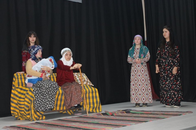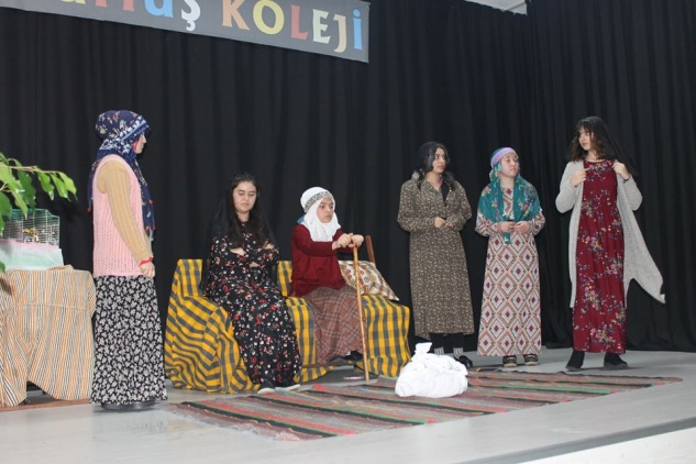 Şehit İbrahim Armut Fen Lisesi 9. sınıf öğrencilerinin sahnelediği Töre adlı oyun izleyenlerin büyük beğenisini topladı.