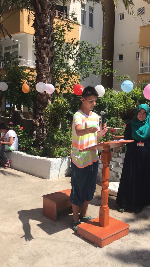 “Bizi yalnız bırakmayan Anamur Milli Eğitim Müdürümüz İlyas Mercan’a, Bozyazı Milli Eğitim Müdürümüz Mustafa Sezgin’e, Anamur Milli Eğitim Şube Müdürü Aydın Çetiner’e, Anamur Milli Eğitim Şube Müdürü Alp Arslan’a, AK Parti İlçe Başkanı Feyzi Yılmaz ve yönetim kurulu üyelerine, AK Parti Kadın Kolları Başkanı Funda Cop ve yönetimine, AK Parti Gençlik Kolları Başkanı Adem Ceylan ve yönetimine, AK Parti İl Genel Meclisi Üyesi Cengiz Pınar’a, AK Parti Belediye Meclis Üyesi İbrahim Çıtırgı’ya, AK Parti Yöneticilerinden Durmuş Tolu ve Yener Fazlıoğlu’na, Anamur Engelliler Derneği Başkanı Hikmet Narcı’ya, Muz-Bir Başkanı Mehmet Güzel’e, Turizm Derneği Başkanı Fatih Şen’e, bütün mahalle muhtarlarımıza, Anadolu Üniversitesi Özel Eğitim Bölümü Öğretim Üyesi Dr. Ayten Düzkantar hocama, Özel Eğitim Öğretmenleri Nihat Eersoy’a, Ayşe Dal Şakacı’ya, Mehmet SATAR’a, Şehit Eren Bülbül Eğitim Öğretimi Destekleme Kursu Müdürü Hürü Tülü Erdil ve Soner Erdil’e, Erbal Kreş Öğretmenlerinden Raziye Selvan ve Eşi Polis Memuru Veysel Selvan’a, Kalkan Petrol Sahibi Mehmet Kalkan ve Eşi Hatice Kalkan’a, Emir Oto Lastik Emir Toprak ve Eşi Safiye Toprak’a, ses sistemimizin sorumlusu Hüseyin Yılmaz’a, Enka Yemekçilik’e, bütün öğrencilerimiz ve ailelerine, personelimize çok teşekkür ediyorum.”
