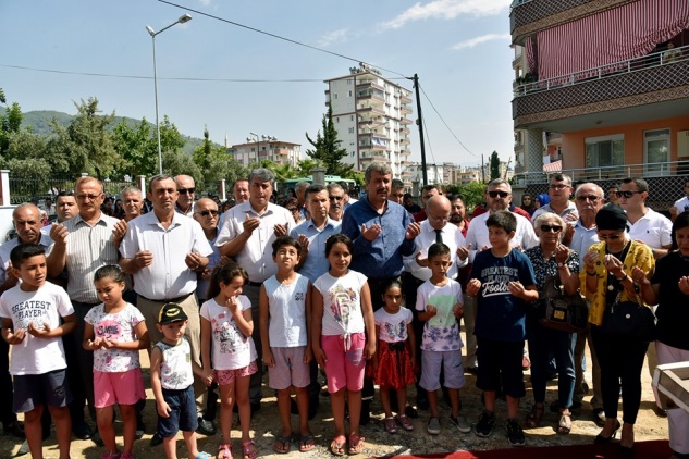 Saygı Duruşu ve İstiklal Marşı’nın okunmasıyla başlayan Gülşen-Abdulnasır Aydın Parkı açılışında belediye din görevlisi Yalçın Şahin dua okudu.