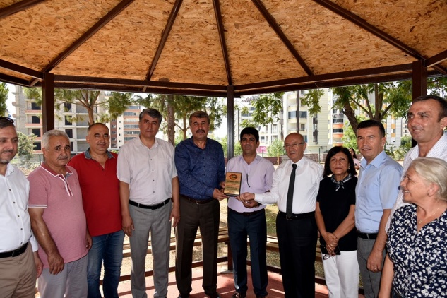 Konuşmaların parkın yapımını üstlenen Abdulnasır Aydın’a Kaymakam Mehmet Kurdoğlu ve Belediye Başkanı Hidayet Kılınç tarafından teşekkür plaketi takdim edildi.
