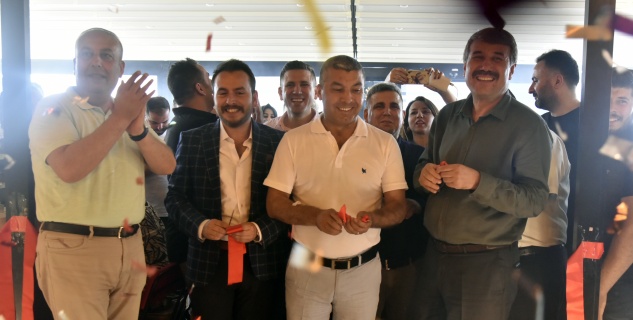 Daha sonra Kılınç ve ilçe başkanları kurdeleyi keserek işyerinin açılışını yaptılar ve hatıra fotoğrafları çektirdiler.
