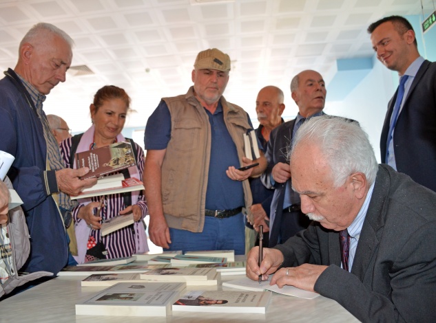 Vatan Partisi İl Başkanı Lerzan Özgenç’in de eşlik ettiği Perinçek, kurultayın sonunda katılımcılara kitaplarını imzaladı.