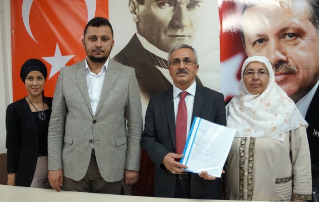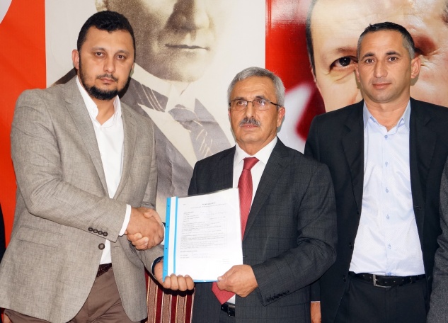 Recep Öz, daha sonra aday adaylığı başvuru dosyasını AK Parti Anamur İlçe Başkan Yardımcısı Seçkin Taş’a teslim etti.