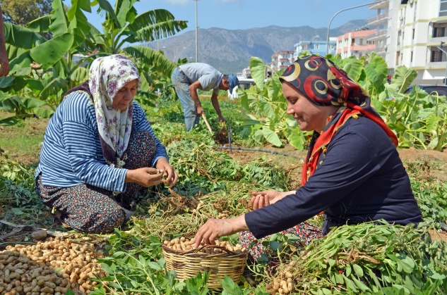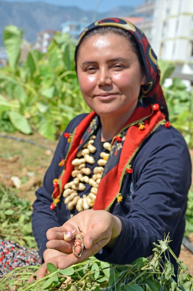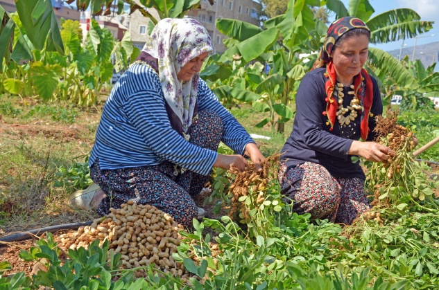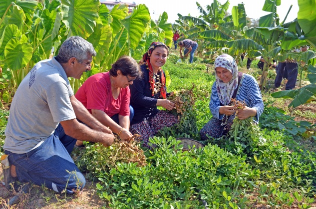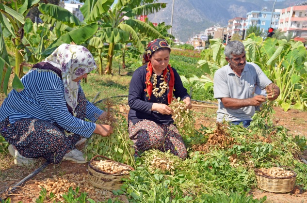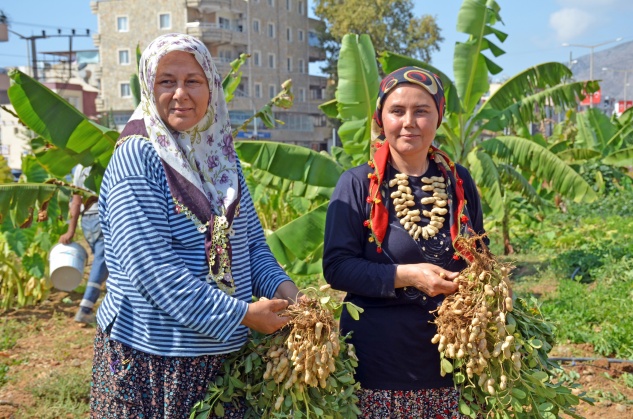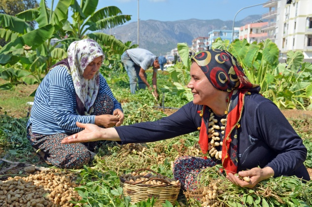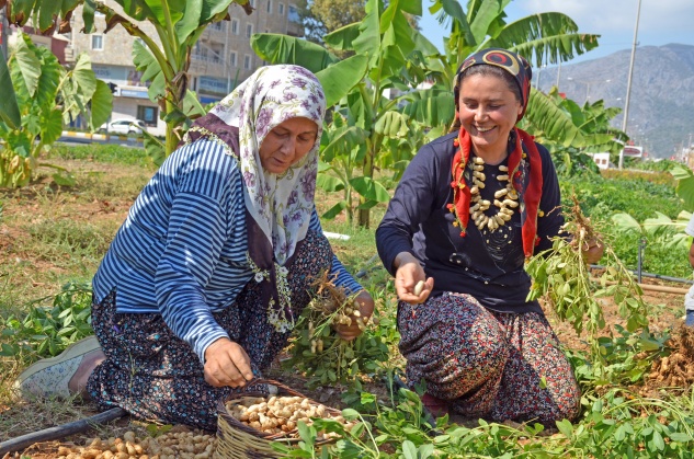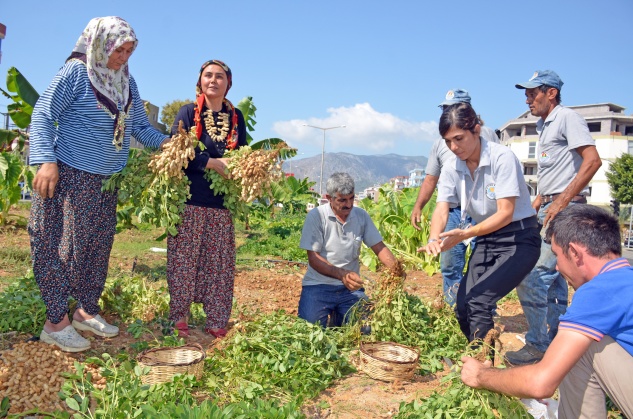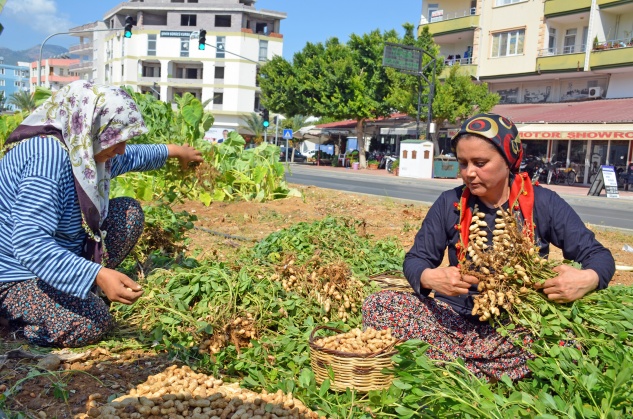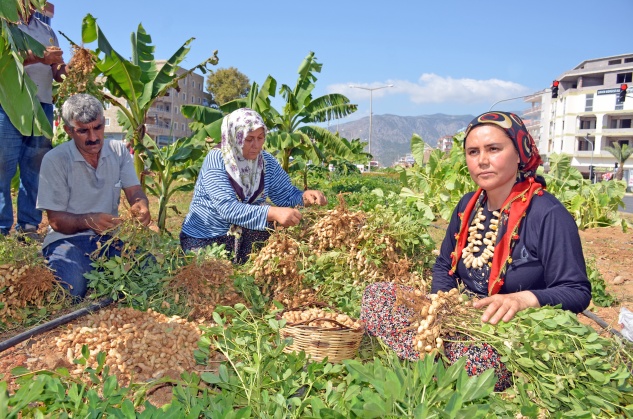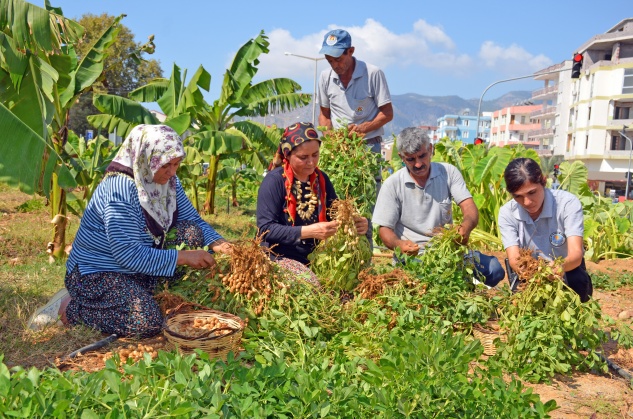 Mersin Antalya karayolunun Bozyazı şehir merkezindeki bölümünde refüje ekilen yöresel ürünlerden yer fıstığının hasadı Belediye Başkan Yardımcısı Birsen Atılkan, belediye görevlileri ve vatandaşların katılımıyla gerçekleştirildi.