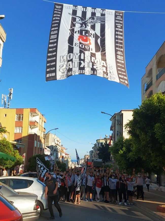 Anamur Beşiktaş grup başkanı Barış Şimşek’in öncülüğünde başlayan şampiyonluk kutlamasına yaklaşık yoğun bir kalabalık taraftar grubu destek verdi. Beşiktaşlı taraftarlar, Anamur Beşiktaş grup başkanı Barış Şimşek’in öncülüğünde söyledikleri marşlar ve yaktıkları meşalelerle takımlarının şampiyonluğunu kutladı.
