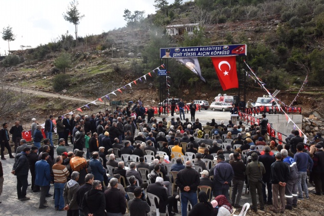 Konuşmasında Anamurlu şehitler başta olmak üzere tüm şehitleri rahmetle anan Başkan Mehmet Türe: “Birçok projelerimizde Anamurlu şehitlerimizin ismini verdik. Bu köprümüze de Yüksel Alçın Şehidimiz ismini verdik. Yaptığımız bu köprü ile yaklaşık olarak Anamur ve Gazipaşa’nın 15 yaylasına geçişi sağlayacaktır. Mahallemize, Anamurlu ve Gazipaşalı hemşerilerimize hayırlı olsun ” dedi.