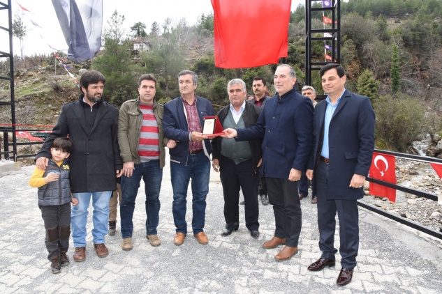 Başkan Mehmet Türe’nin konuşmasının ardından Şehit Yüksel Alçın’ın ailesine ve köprü yapımına vesile olan Hasan Erdem ve Anamur Kaş Pazarı Yayla Kültür ve Yardımlaşma Derneği ekibine plaket taktim edildi. Köprü Açılış programı Kurdele Kesimi ve ikramların sunulması ile son buldu.