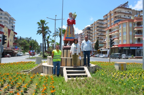 Şehrin doğu girişindeki Muzlu Kadın heykelinin de bakımını yaptıklarını ifade eden Kasapoğlu, “İlçemizin simgesi olan muz taşıyan yörük kadınını ifade eden heykelimizin bakımını yaptık ve yeniden boyadık. Resim öğretmeni arkadaşımız Çağdaş Demir bize destek verdi. Kendisine teşekkür ederiz” diye konuştu.