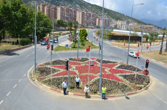 Belediye Başkan Yardımcısı Türkan Kasapoğlu, şehrin girişindeki kavşağa ay yıldız yerleştirdiklerini diğer kavşakları da çiçeklendirdiklerini belirterek, “Bu çalışmada Park ve Bahçeler Müdürlüğümüzün 20 personeli görev aldı. Vatandaşlarımızın beğendiği bir çalışmaya imza attık. Onların beğenisi bizi motive ediyor. Şehrimizi güzelleştirmek, ilçemizden geçenlerin ilgisini çekecek güzellikler oluşturmak için çalışıyoruz” dedi.