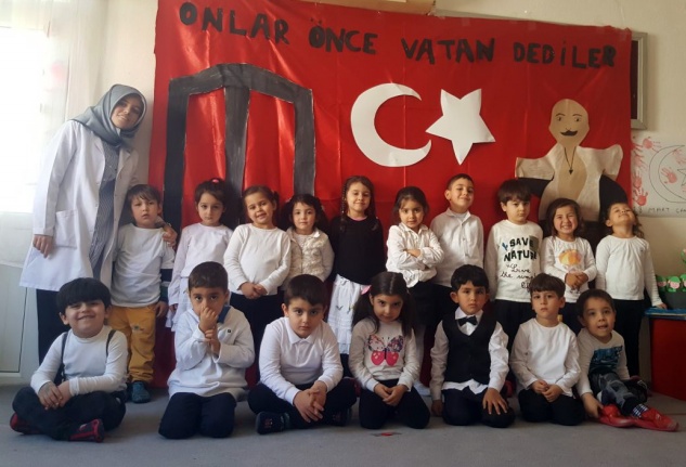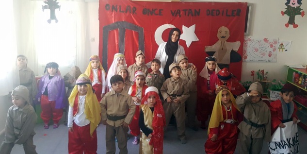 Sevgi Deryası Kreş ve Anaokulu öğrencileri, Çanakkale Zaferi’nin 103. yıldönümü dolayısıyla şehitleri anma etkinliği düzenledi.
