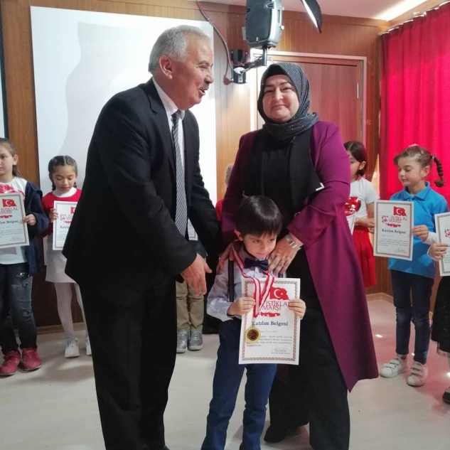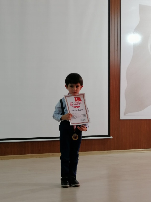 Sevgi Deryası Kreşi ve Gündüz Bakım Evi öğrencisi Yağız Emin Ağca, ilçe genelinde düzenelen İstiklal Marşı okuma yarışması okul önce kategorisinde birinci oldu.