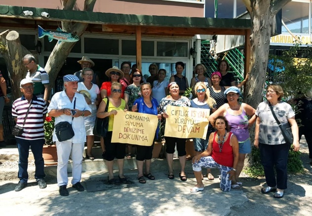 Ellerinde “Çevremize dokunmayın”, “Denizimize dokunmayın” ve “Canlıların yaşam alanlarını yok etmeyin” dövizlerini taşıyan yurttaşlar, yine düdük çalarak ses çıkarma eylemi yaptı.