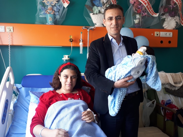 Aslan ailesi ve Toprak ailesi bebek sevinçlerini Doktor Hakan Sade ve hastane çalışanlarına tatlı ve çikolata ikram ederek paylaştılar.