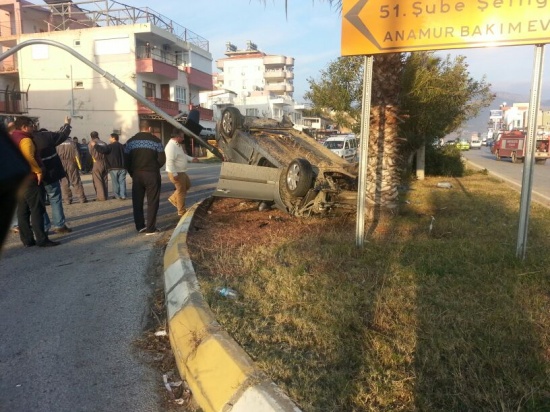 Bozyazı istikametinden Anamur istikametine seyir halinde olan sürücü direksiyon hakimiyetini kaybetmesi ile bariyerlere çarptıktan sonra takla attı. Sürücünün ölümden döndüğü kazadan edinilen bilgide Bozyazı’dan Anamur istikametine ilerleyen araç sürücünün direksiyon hakimiyetini kaybetmesi ile yoldan çıktığını bir süre sürüklendikten sonra ancak trafik ışıklarına çarparak durabilen araçta maddi hasar meydana gelirken sürücü şahsın yaşı küçük ve ehliyetsiz olduğu öğrenildi.