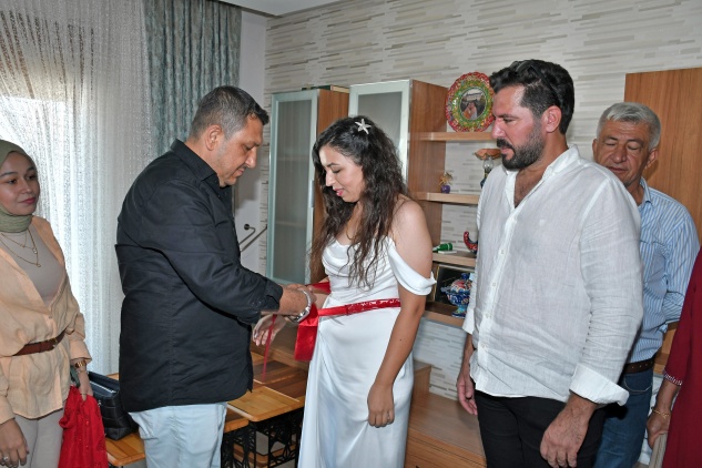 Düğüne katılan Anamur Belediye Başkanı Durmuş Deniz de genç çifte mutluluklar dileyerek hediye verdi.
