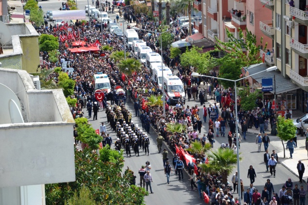 Şehidimiz yalnızca Anamur’dan değil, Gazipaşa’dan, Bozyazı’dan, Aydıncık’tan onbinlerce vatandaşımızın katılımı ile Otogar Camiinde kılınan namazın ardından Askeri Bando eşliğinde vatandaşlarımızın nezaretinde Saçkan Kavşağı’na kadar taşınmış, buradan da baba ocağına, Emirşah Mahallemiz’e götürülmüştür.