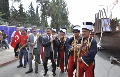 Toroslar Belediyesi Park ve Bahçeler Müdürlüğü bünyesinde belediye personeli marifetiyle bire bir ölçüde yapılan ve İstanbul’un Fethinde büyük rol oynayan kadırgaların yeniçeriler tarafından halatlarla çekilerek tarihin canlandırıldığı şenlikte, Belediye Başkanı Hamit Tuna da Belediye Meclis Üyeleriyle birlikte kadırgaları omuzlarda çekerek yürüdü.