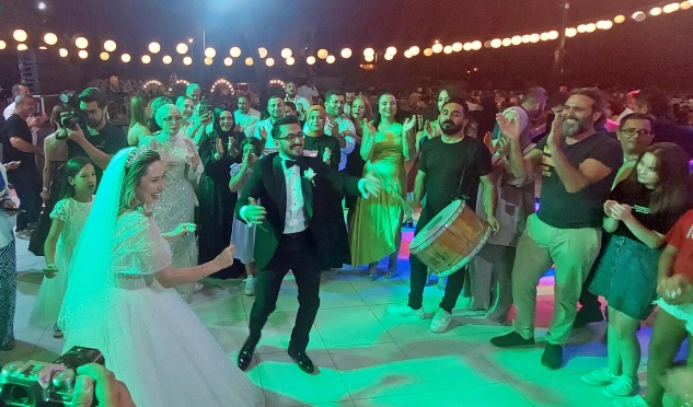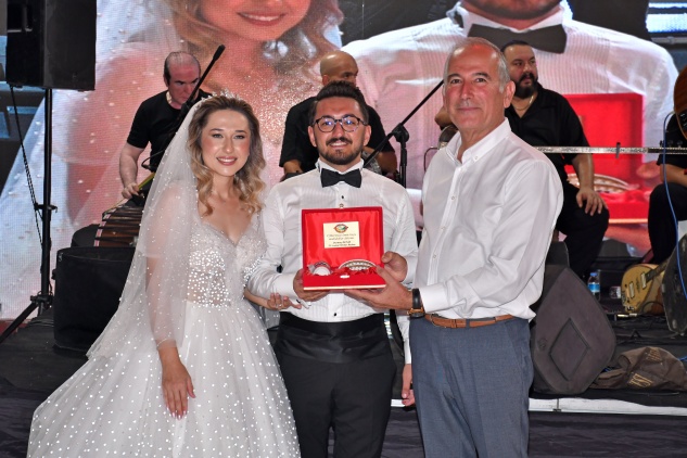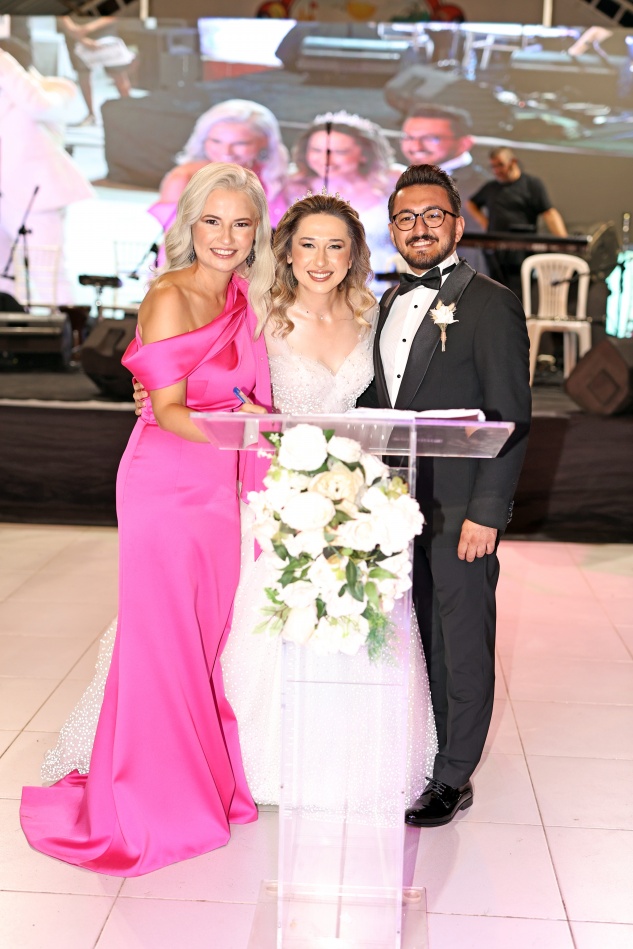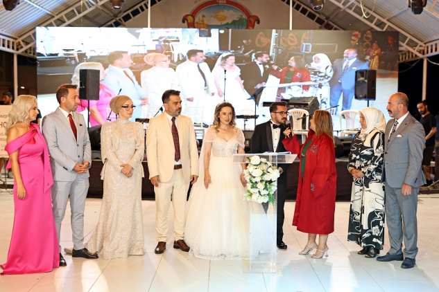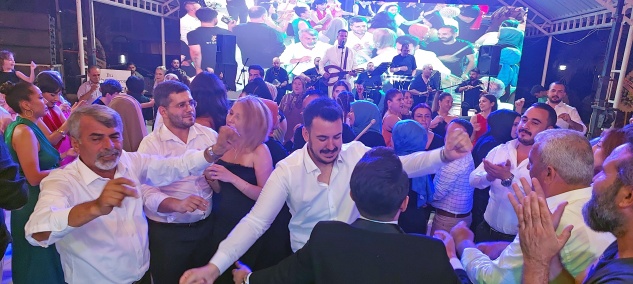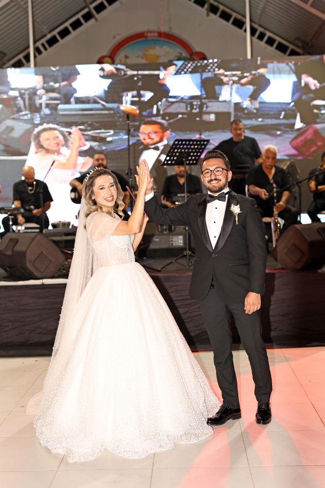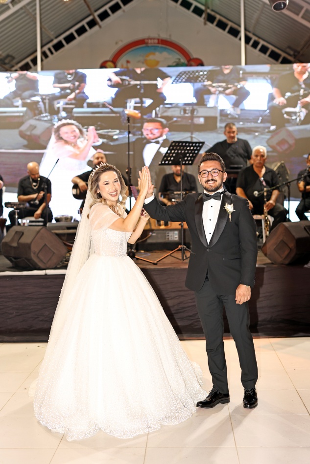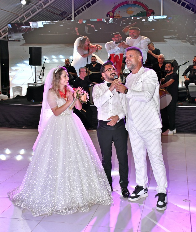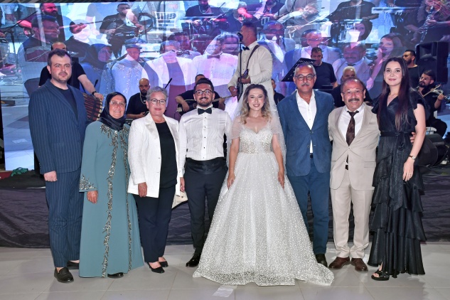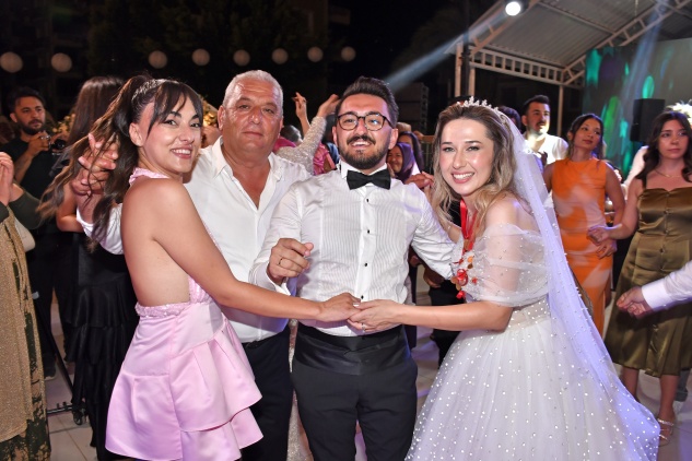 Genç çifti sahnede bir an olsun yalnız bırakmayan arkadaşları, Sami Çelik ve orkestrasının  birbirinden hareketli parçalarıyla geç saatlerine kadar eğlendiler.