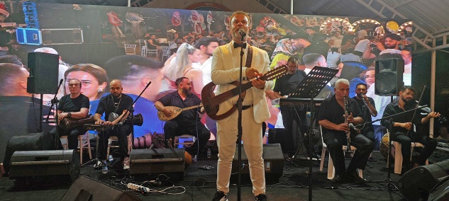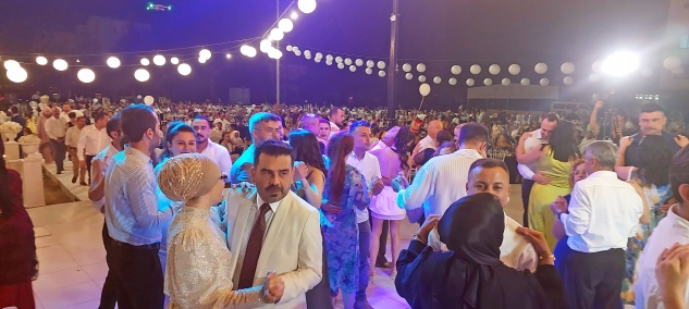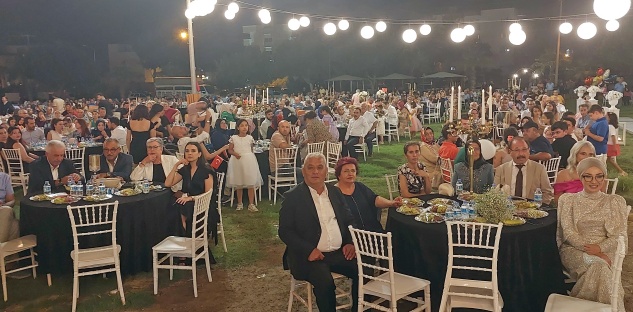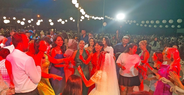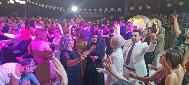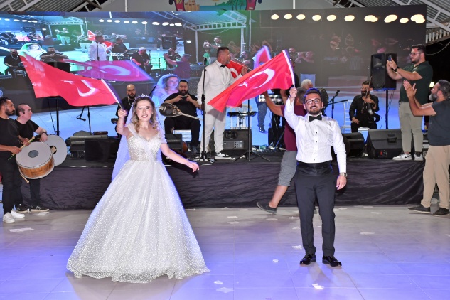 Daha sonra, Sanatçı Sami Çelik ve orkestrasının eşliğinde düğüne katılanlar bayraklarla onuncu yıl marşını hep birlikte söylediler.