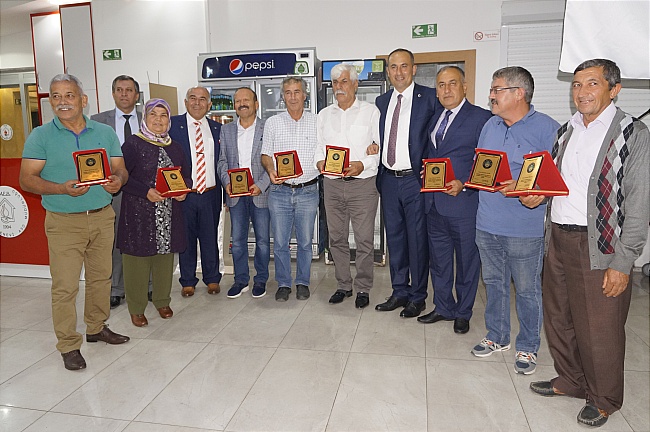 Konuşmaların ardından emekli öğretmenler Mehmet Kılınç (Akdeniz İlkokulu), Hidayet Kovancı (Bozdoğan İlköğretim), Asut Altay (Fen Lisesi), Fethiye Çetin (Anadolu Lisesi), Kazım Kılınç (Akdeniz İlkokulu Müd.) ve Münevver Kaş (eşi Hüseyin Kaş’a verildi) ile eğitim çalışanları Necdet Şahin ve Hasan Tülübaş’a plaket takdim edildi.