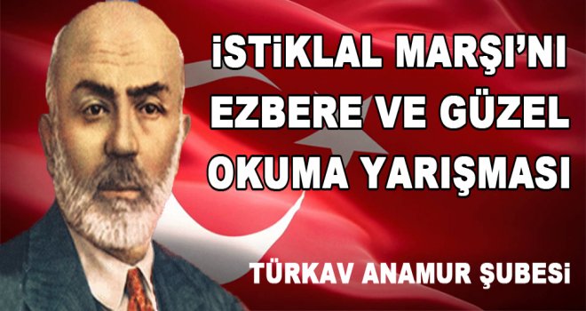 TÜRKAV” İstiklal Marşını Güzel Okuma “yarışması düzenliyor. Konu hakkında bir basın bildirisi yayınlayan TÜRKAV Anamur Şube Başkanı Mehmet Gümüş, “12 mart  İstiklal Marşının Kabulü “münasebetiyle Yarışmaya Ortaöğretim Okullarının 5.6.7 ve 8.sınıfları ile Lise ve Dengi Okulların tüm   sınıfları katılabilecekleceğini söyledi.