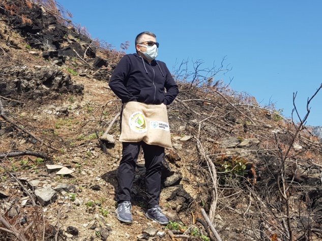 Etkinlikte ağaçların yandığı bölgeye çam tohumu atıldı.