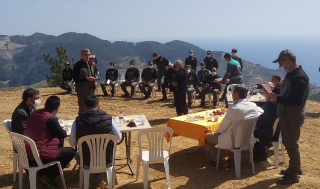Ucarı mahallesinde geçtiğimiz yıl çıkan orman yangınında zarar gören bölgede Kaymakam Aydın Memük, Belediye Başkanı Hidayet Kılınç, Cumhuriyet Başsavcısı Seyfettin Ünal, Jandarma Komutanı Binbaşı Savaş Cingöz, Orman İşletme Müdürü Hüseyin Gübeş ve vatandaşlar katıldı.