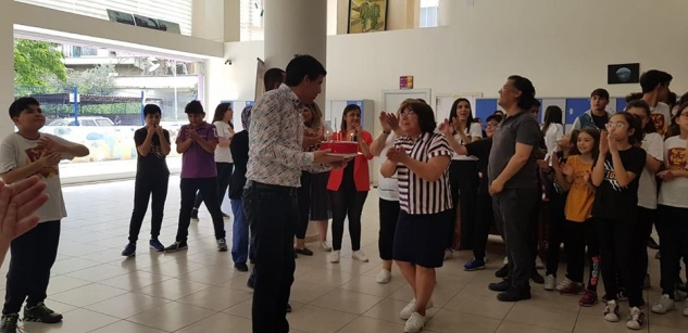 Her şeyden habersiz okulun giriş salonuna öğretmen ve öğrencilerin alkışları arasında gelen Eski, öğretmenlerinin elinde doğum günü pastasını görünce büyük şaşkınlık yaşadı.