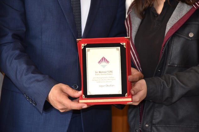 Plaketi Uğur Okulları öğrencisi kızı Ayça Türe’nin elinden alan Başkan Mehmet Türe bundan dolayı ayrıca memnun olduğunu ifade etti.