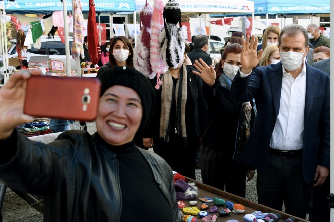 Mersin Büyükşehir Belediyesi’nin öncülüğünde Erdemli’de ilk kez açılan stantlarda buluşan üretici kadınlar, el emeği göz nuru ürünlerini sergiledi. Etkinlik alanını eşi Meral Seçer’le birlikte ziyaret eden Başkan Seçer, üretici kadınların büyük ilgisiyle karşılaştı. Başkan Seçer, “Anamur’dan Tarsus’a kadar her ilçemizde kadın üreticilerimizin ürünlerini ekonomik değere dönüştürdüğü bu tip alanlar oluşturmak için güzel çalışmalarımız oluyor ve bundan sonra da devam edecek” diye konuştu.