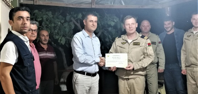 Daha sonra yangın esnasında iş makinası ile yardımda bulunan Muhammet Çam’a ve 2019 yılı yangın sezonu boyunca orman yangınlarının söndürülmesinde üstün gayret ve özverili çalışmalarından dolayı Bozyazı Helikopter Ekibine teşekkür belgesi verildi.